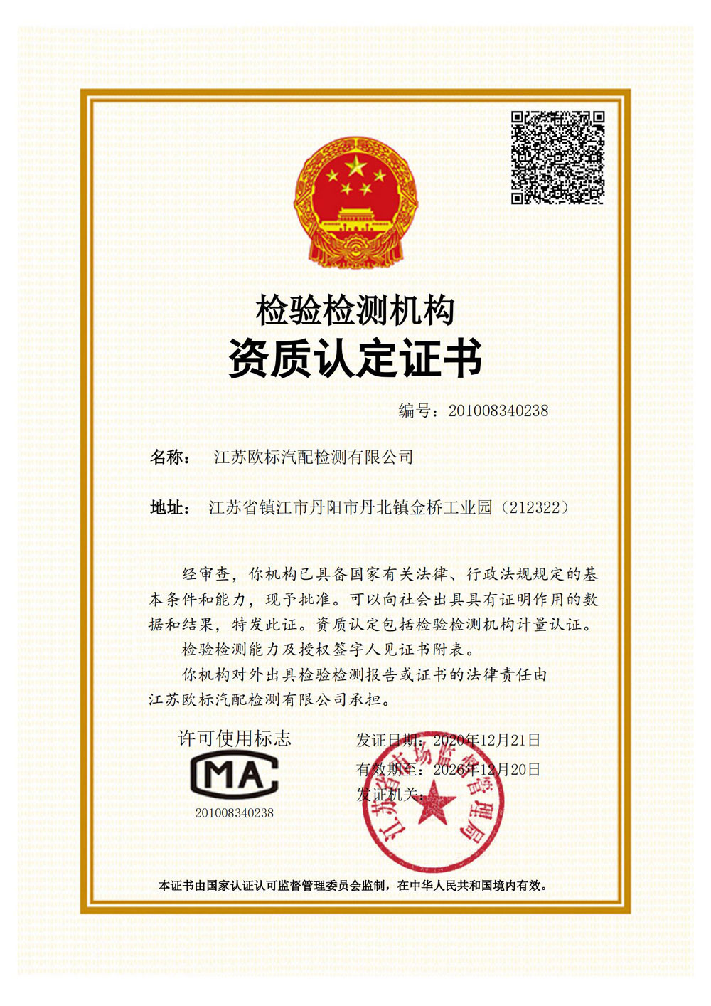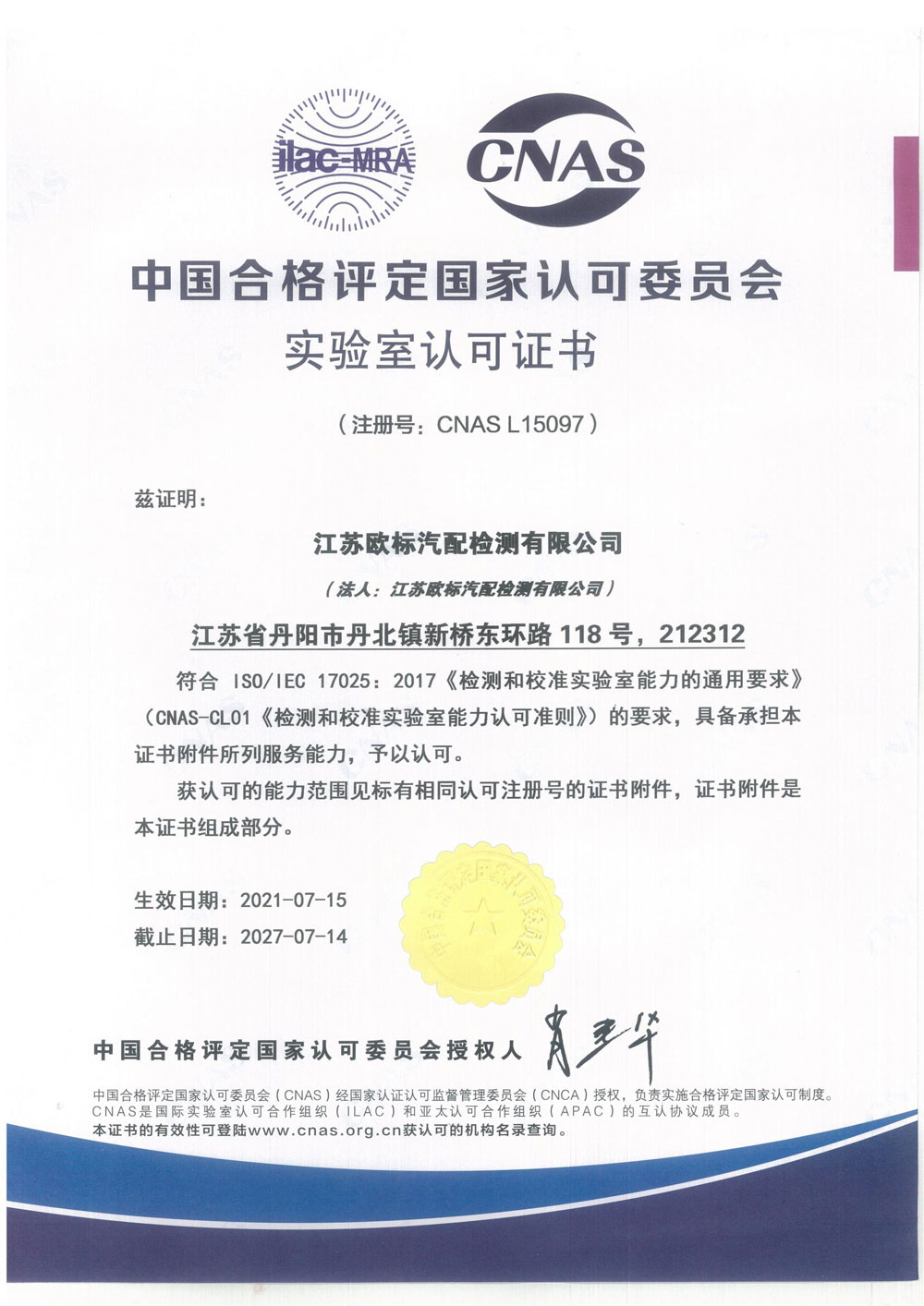 江苏欧标汽配检测有限公司成立于2017年11月,实验室总面积约1000平方米,专职检测员:4名,是从事零部件E/e-mark(ECE/EEC)、DOT、CCC产品检测以及相关制造企业ISO9000、IATF16949体系认证服务的专业机构。服务产品范围覆盖汽车、摩托车、电动车车辆的灯具、车载电子产品、后视镜、安全带、喇叭、回复反射器、儿童安全座椅等。我们拥有完善的检测合作实验室,是获得中国合格评定国家认可委员会CNAS及CMA资质的第三方检测机构。公司拥有一批经验丰富的业界资深工程师队伍及客服团队,为客户提供一站式服务。因为专注,所以专业的服务理念,成就了江苏欧标品牌的专业形象,也得到了国内外客户和同行的广泛认可,获得了良好的信誉和稳定的市场。